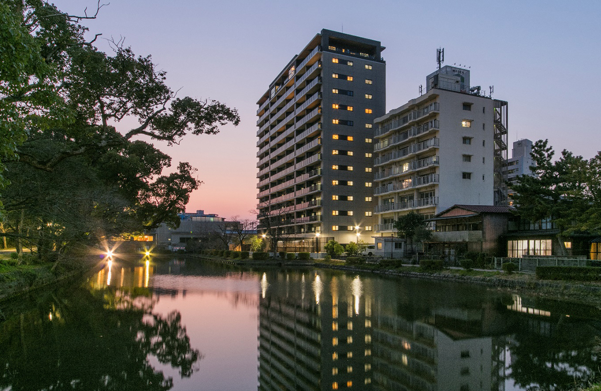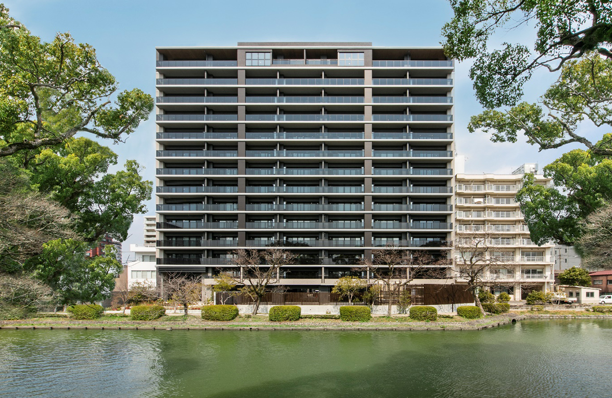 「デュオヒルズ城内」は、佐賀城公園を囲むお濠のすぐ側に建っています。南側がお濠に面する、この上ない希少な立地です。この立地を存分に生かすため、「佐賀城とつながる」をコンセプトに、佐賀城公園との一体感を意識したモノづくりを行いました。主役はなんといってもお濠の景観です。それを念頭に置き、特別な地にふさわしい風格や格式を感じられる上質なデザインにすることを心掛けました。