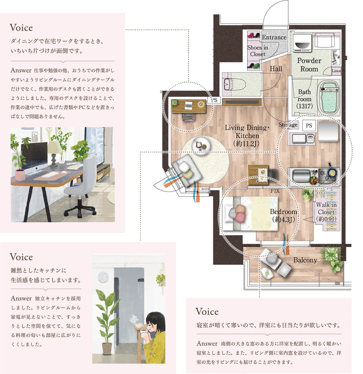 このようなアンケートや座談会でいただいた声からうまれたプランのが「ニューおうち時間を充実させるプラン」と「シンプリストのための1LDK 」です。
