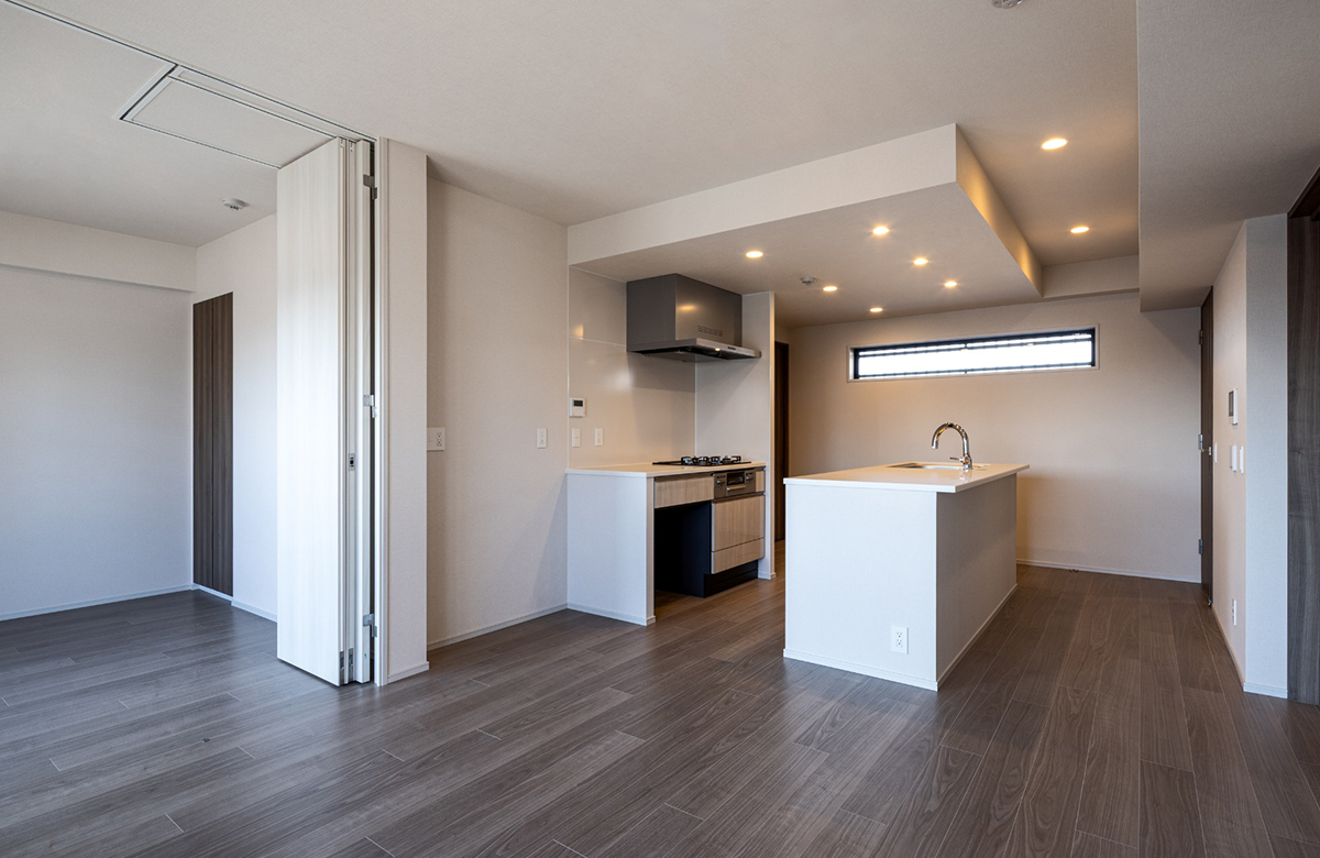 さらに、シンクとコンロを分けたⅡ列型のアイランドキッチン「fit(フィット)キッチン」は、半数以上の住戸に採用しました。作業効率が上がるだけでなく、家族でキッチンを囲んで料理をするなど、キッチン・ダイニングを中心としたコミュニケーションも取りやすい設計です。