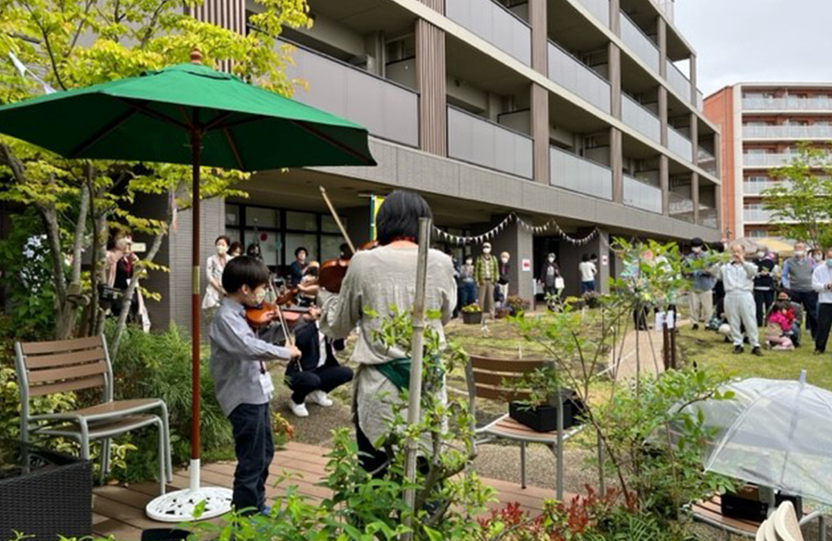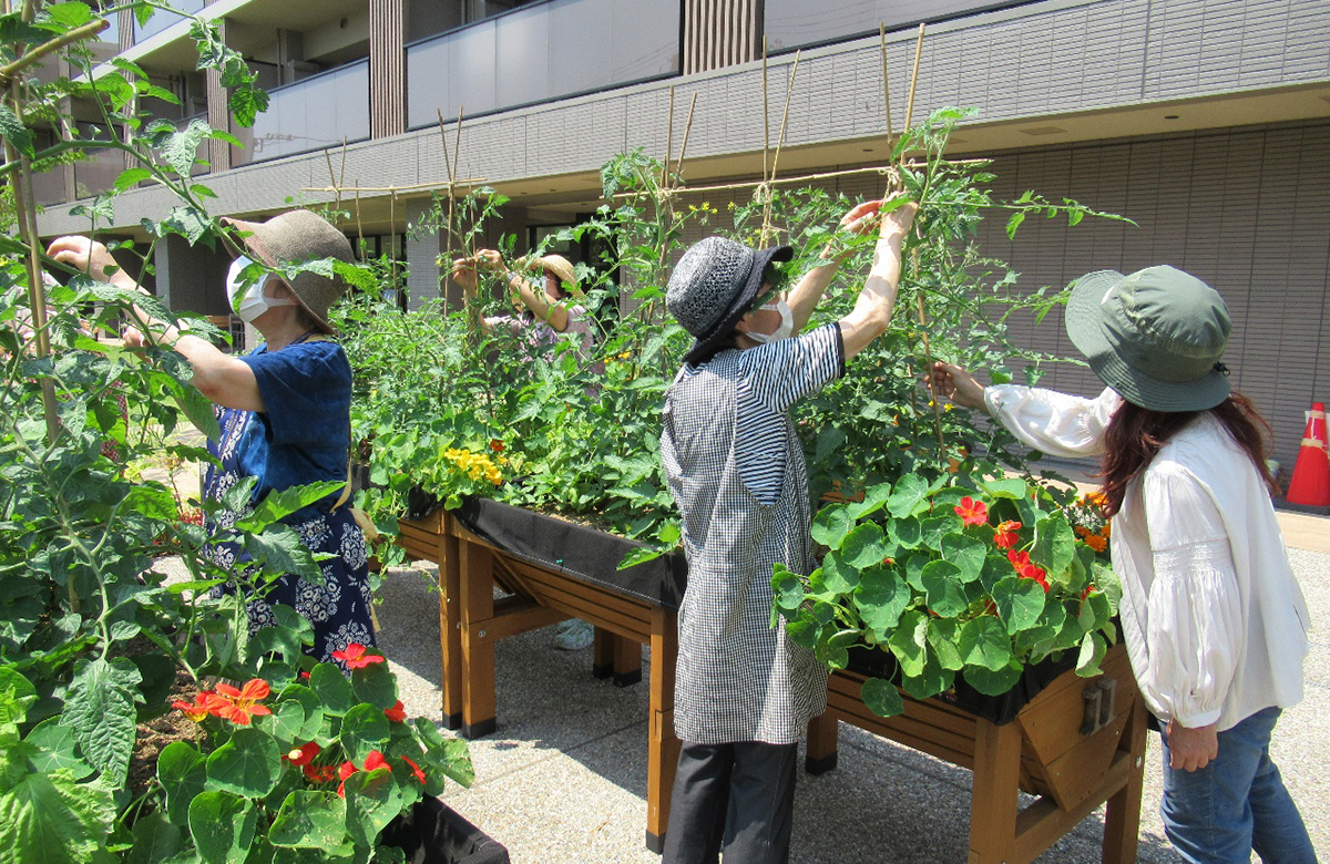 DS国立では、希望する入居者が自分の植栽ボックス(レイズドベッドと呼ばれるもの)を借りているので、森井さんはそれを管理し、植栽のアドバイスやサポートを行っています。また行政と協定を結び自主管理している敷地内の公園を整備して、その場所を街の人たちにも開いて、定期的にイベントを行っています。繰り返し行うことで、街の人と入居者の交流が生まれているそうです。