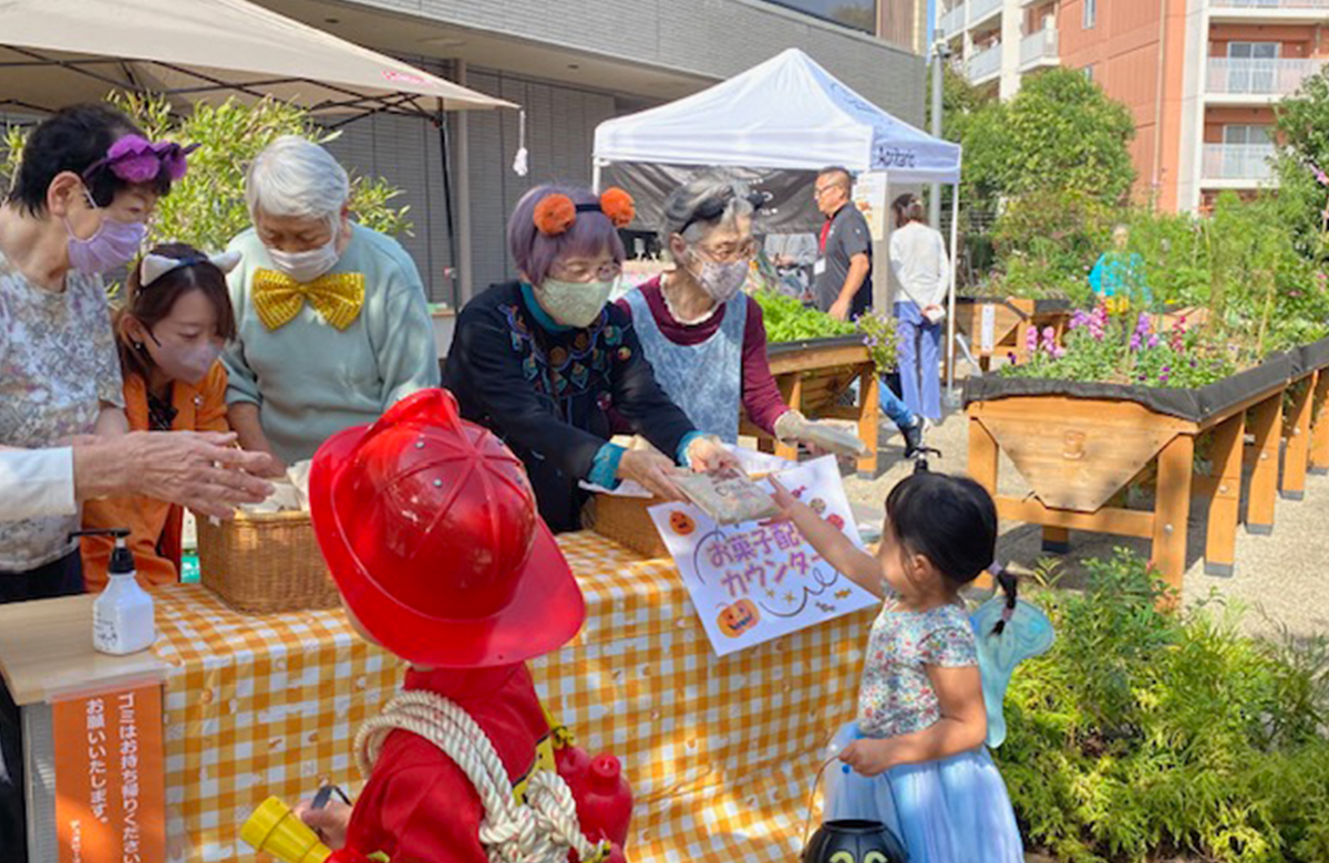 入居者と地域の子どもたちとの触れ合いの場となっているハロウィンイベントは、入居者も楽しみにしている毎年恒例のイベントです。