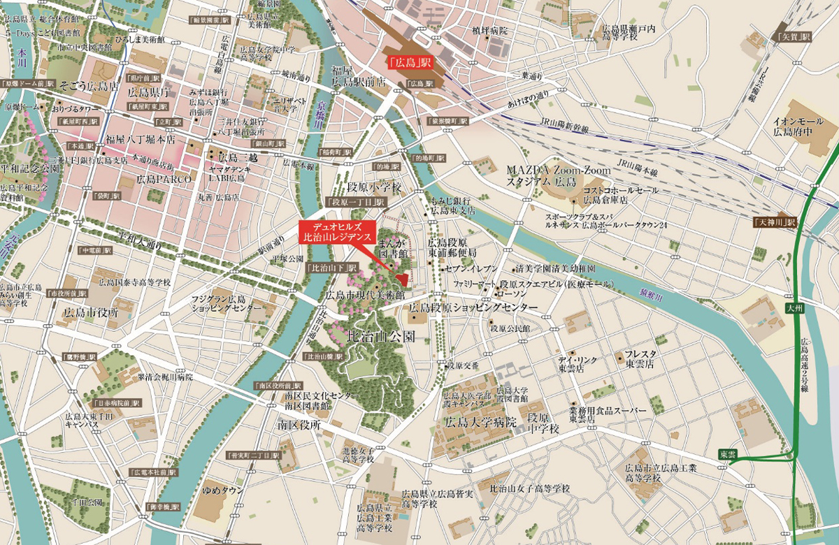 そんな山の麓にありながら、今では広島の中心地に近く利便性があり、広島市現代美術館など文化・芸術にも触れられる環境の良さも兼ね備えた地域になりました。