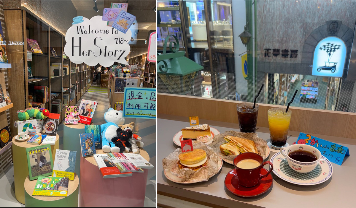 通路を挟んだ向かいにある「Her Story(ハーストーリー)」は、絵本や育児、ファッション誌など、女性や子ども向けの本に特化したお店。2階にカフェがあり、さまざまなイベントを開催しています。